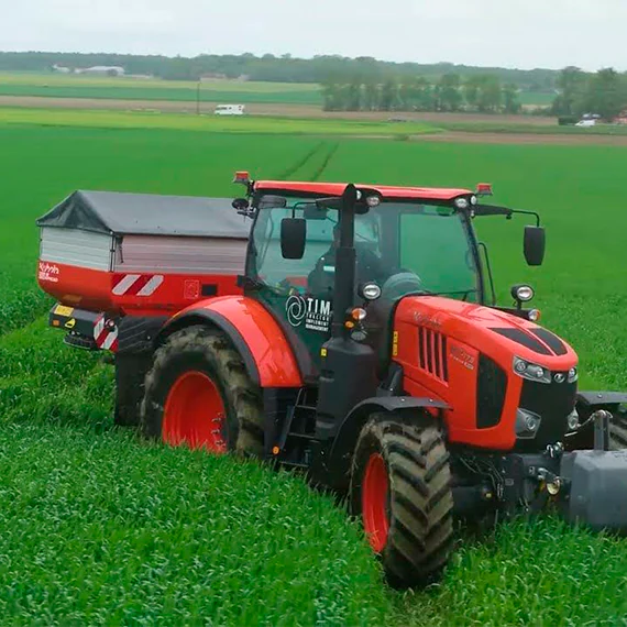Тороразпръсквачът Kubota DSX-W GEOSPREAD TIM е първата машина на пазара, оборудвана с технологията TIM (Tractor Implement Management).
